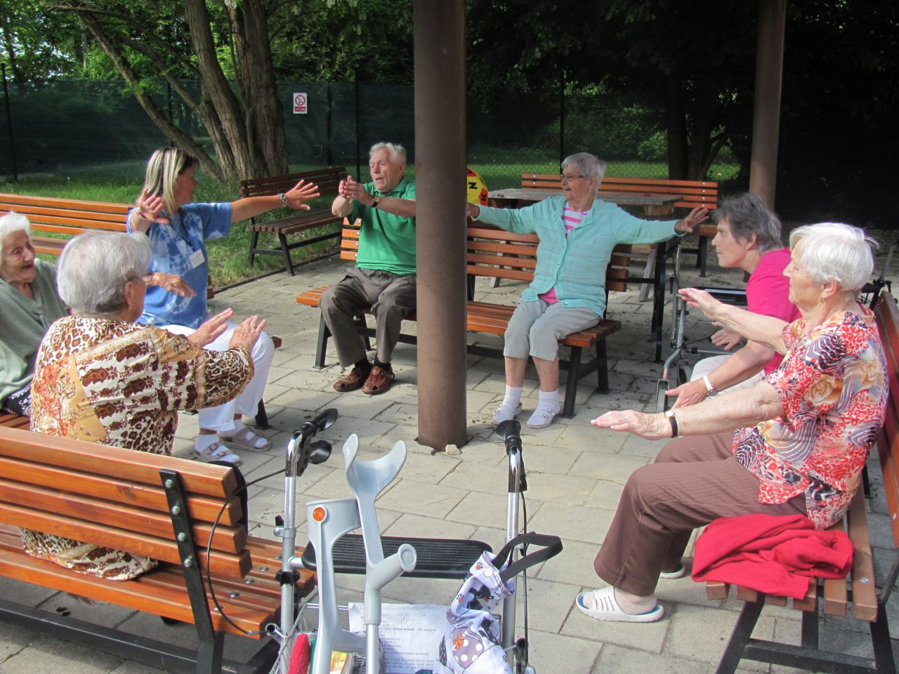 Cvičení venku Dnes jsme si byli zacvičit venku, když je tak krásné počasí.