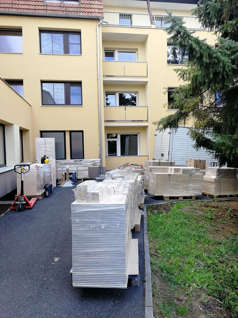 Část nového nábytku do pokojů klientů dnes kolem 6 ráno dorazila